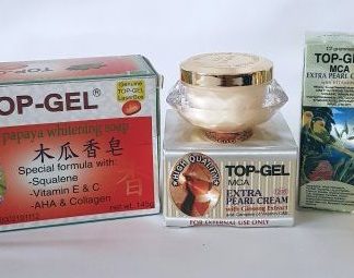 Top Gel Original Papaya Whitening Soap is the only soap that has papaya, squalene, vitamin E and C,AHA and collagen in a single bar. It deep cleanses your skin and removes excess oil making it smooth, white and free from blackheads and pimples.