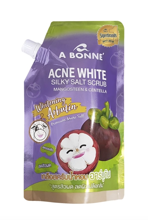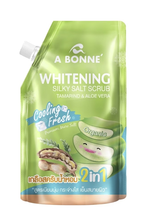Abonne Super Hydrating Silky Salt Scrub Watermelon and Vit.E is a scrub that gently exfoliates the skin and nourishing skin, leave silky, bright and beautifully healthy skin. Micronized salt gently exfoliate to help unclog pores for skin that looks smoother and brighter without skin irritation.Watermelon Extract high in vitamin C and E give antioxidant, rich of vitamin fulfill of water and give brightening.Vitamin E help to reduce free radical and protect skin from pollution.Kojic Acid can gives a brighter skin, smoother skin.Whitening Kojic AcidPremium Micro SaltDirection: Pour Silky Salt Scrub on your palm. Rub gently in circular motion on wet skin. Leave it on for 3 minutes, then rinse off with clean water. After use, you can feel softness and smoothness on your skin.