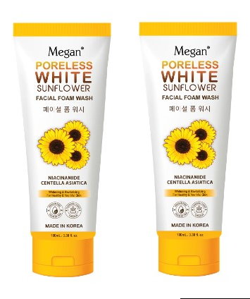 Experience Poreless White with Megan Sunflower Facial Foam Wash. Formulated with Niacinamide, Centella Asiatica and 12-Natural Plant Extracts that cleanses and removes dirt, excess oil and sebum leaving skin soft, supple and glowing for a younger looking skin.